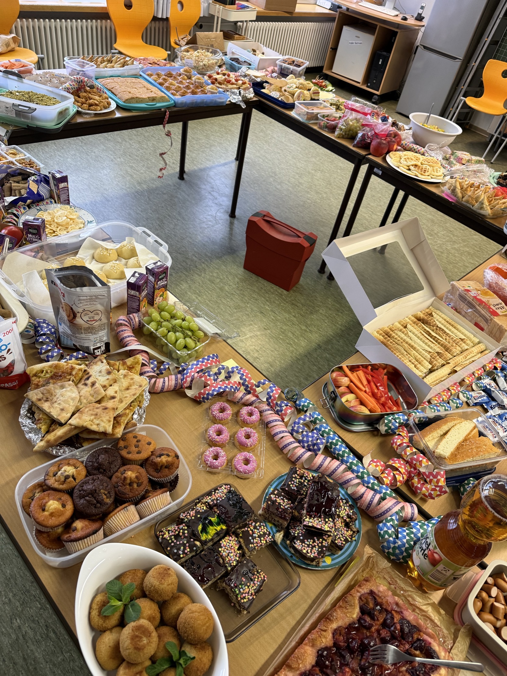 Auf den drei bunt geschmückten Flurgemeinschaften und im Schulkindergarten wurde unter Mitarbeit von Eltern ein reichhaltiges Frühstücksbuffet organisiert, sodass alle Kinder ausgiebig essen und trinken konnten. Außerdem zeigten die Kinder bei einer Modenschau ihre Kostüme und in den Klassen wurden verschiedene Spiele veranstaltet.